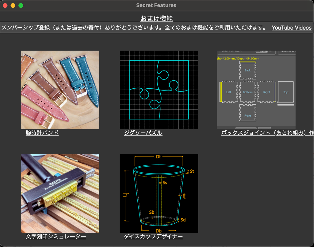 その他レザークラフトで頻繁に使う以下の各種機能をサポート